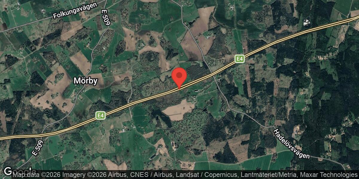 Vägarbete på E4 i riktning mot Nyköping påverkar trafiken i området kring Mjölby under onsdagen den 23 april 2026.